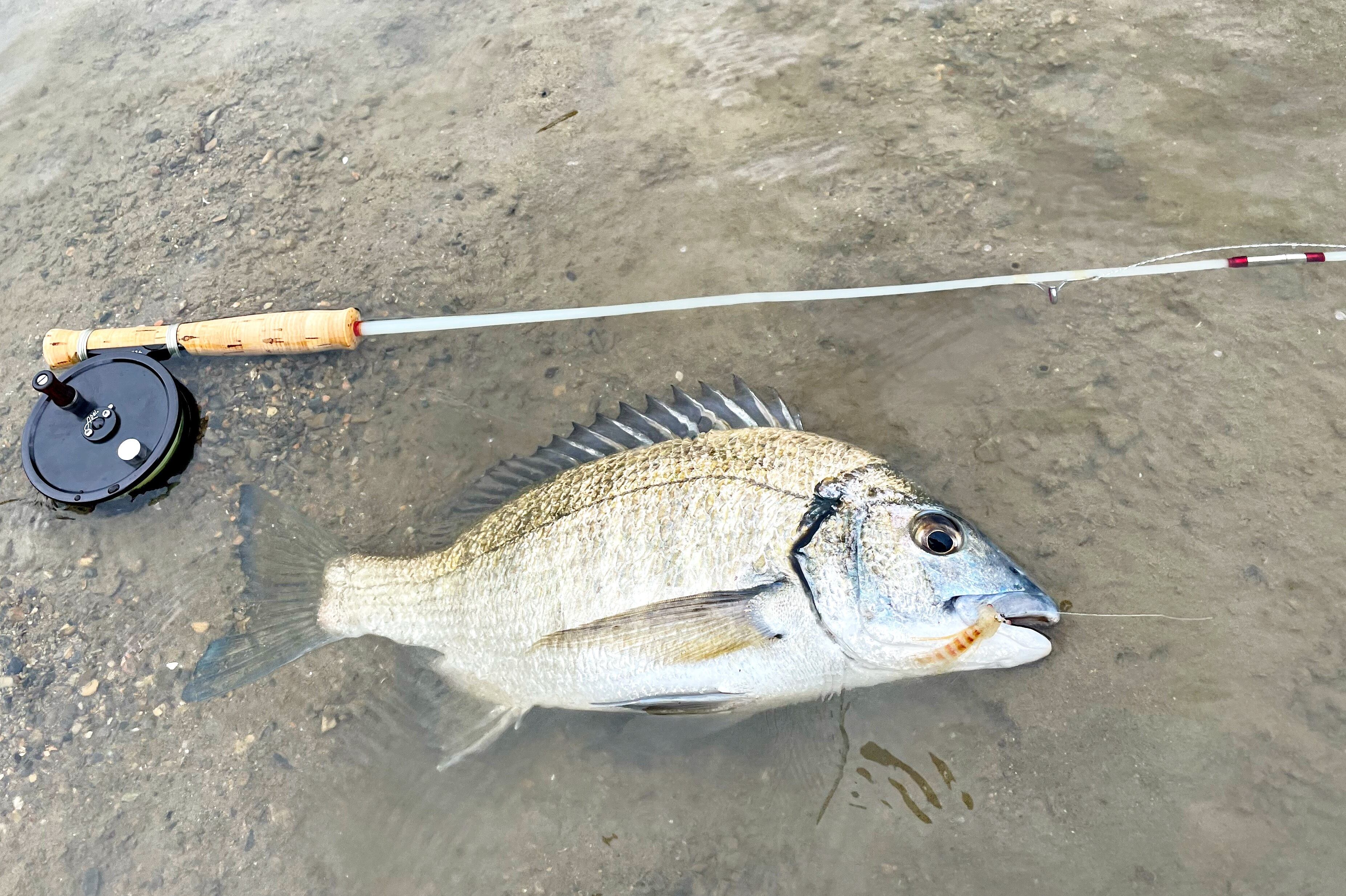 G社管付き伊勢尼6号を使用。シャロー専用。ミナミクロダイのテーリング撃ちに。太軸のフックで大物にも安心の仕様です。