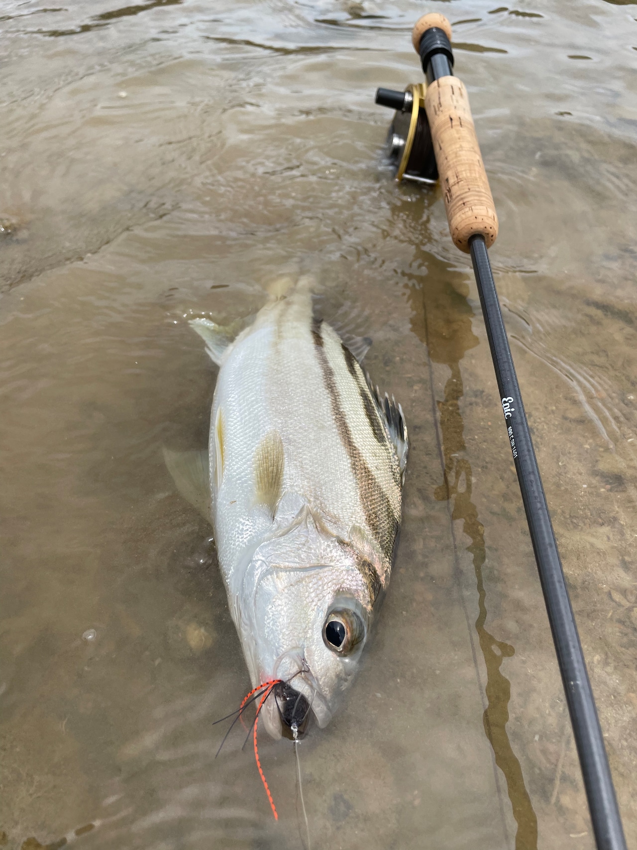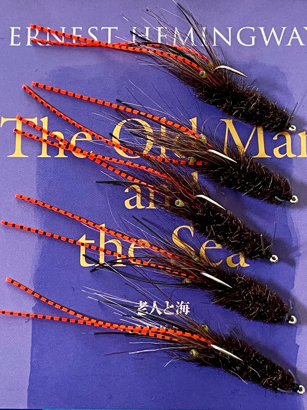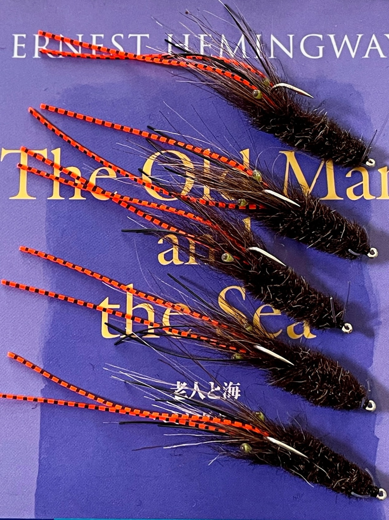 G社波止カマス16号に巻いたダークカラーのシャコエビパターン。大型魚の実績も多く、濁りにも強いのが特徴です。